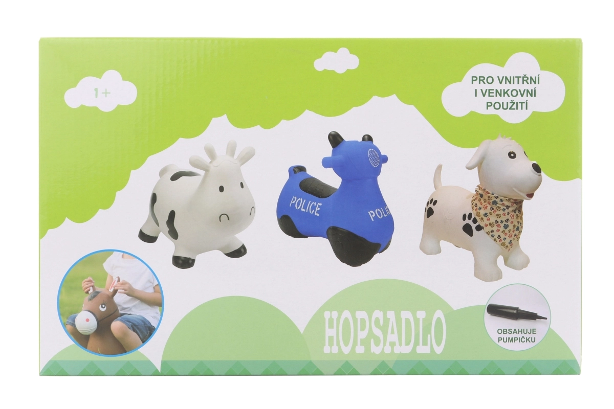 Zabawny gumowy skoczek w kształcie motoru z policyjnym motywem dla dzieci od 1 roku. Wspiera rozwój równowagi, motorykę dużą i koordynację, jest stabilny, wytrzymały i łatwy w czyszczeniu. W zestawie znajduje się pompka do szybkiego napompowania.
