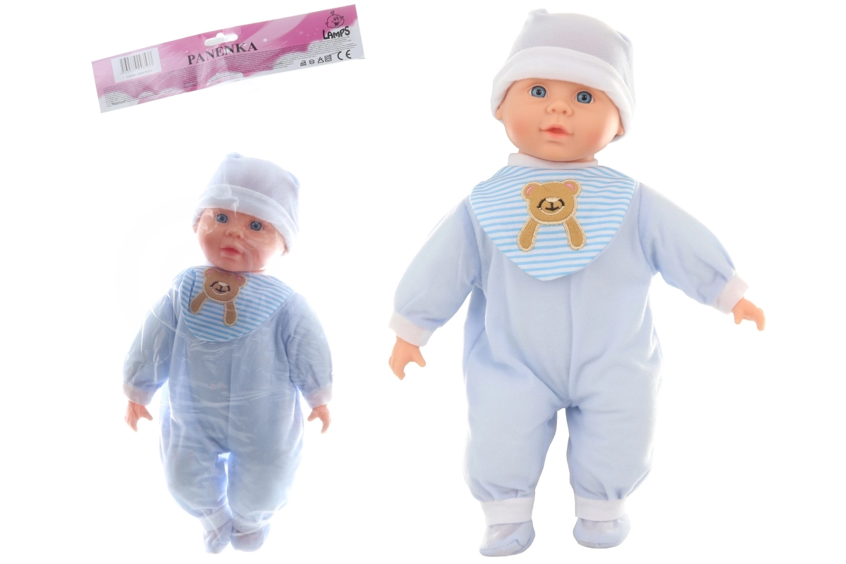 Uroczy bobas chłopczyk z miękkim ciałkiem ucieszy każde dziecko. Po naciśnięciu brzuszka wydaje realistyczne dźwięki, jest ubrany w zdejmowaną piżamkę na rzep i jest gotowy do zabawy od razu po rozpakowaniu dzięki bateriom w zestawie.