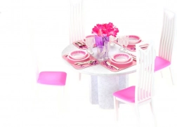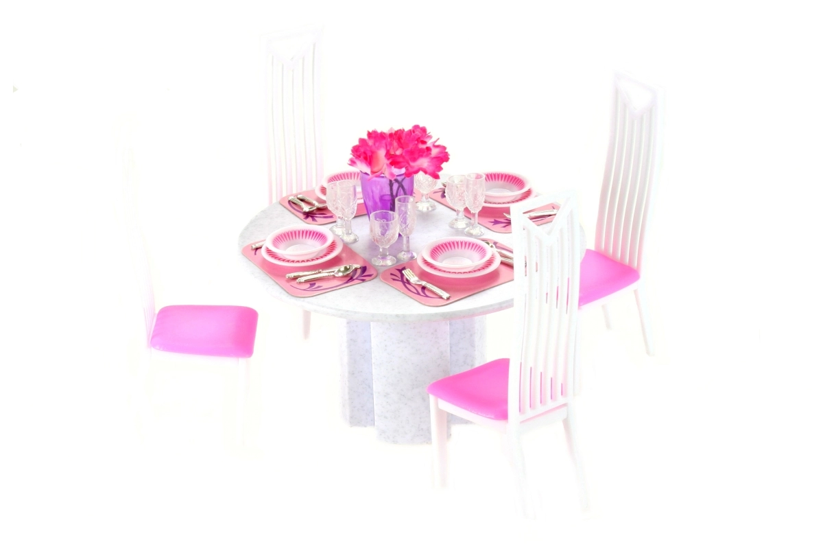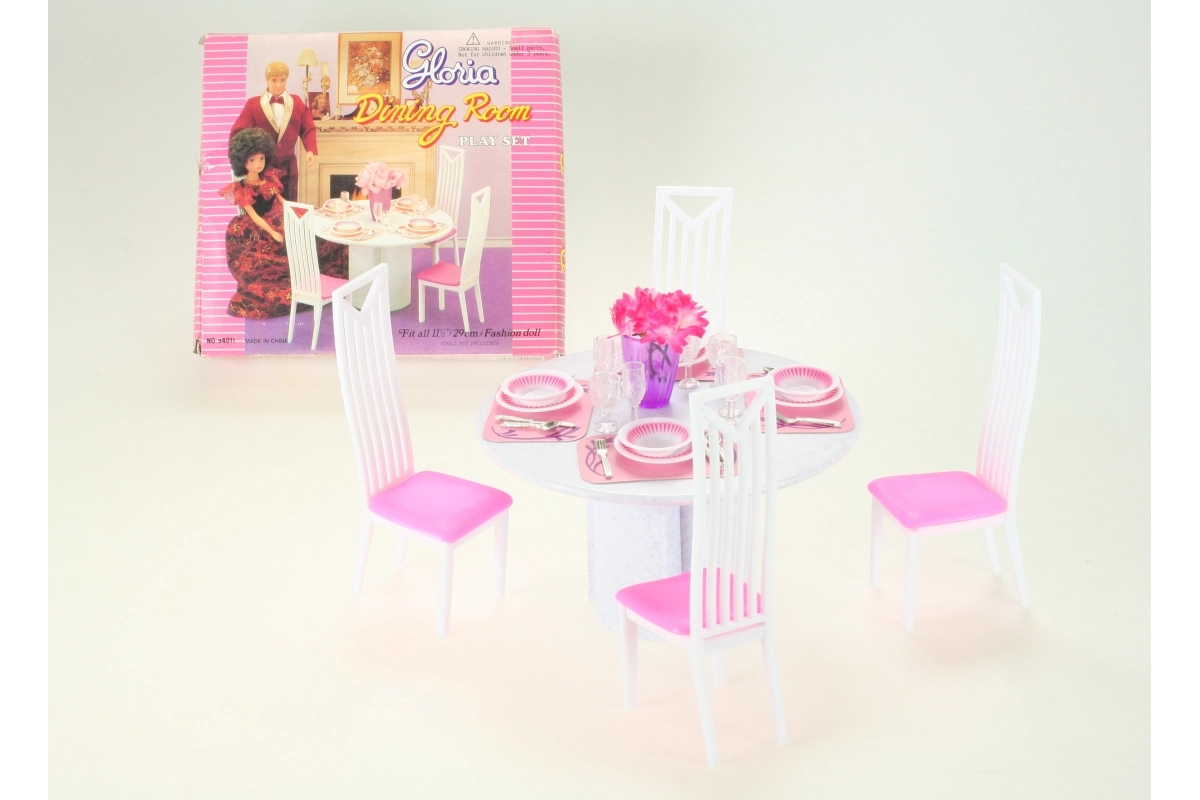 Stwórz dla lalek doskonale nakryty stół. Zestaw jadalniany Glorie oferuje wszystko, czego dzieci potrzebują do zorganizowania rodzinnej kolacji lub uroczystej uczty – od zastawy po wygodne siedziska. Wysokiej jakości plastik zapewnia łatwą pielęgnację i długą trwałość.