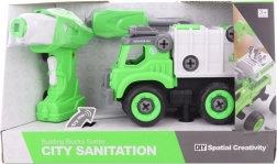 Zabawna i edukacyjna wkręcana śmieciarka zdalnie sterowana dla dzieci od 3 lat. Dzieci łatwo złożą pojazd za pomocą dołączonego śrubokręta lub wiertarki. Po włożeniu silniczka do auta można nim sterować do przodu i do tyłu, a pojazd dodatkowo wydaje realistyczne dźwięki. Interaktywna zabawa, rozwój motoryki małej i łatwe sterowanie w jednym.