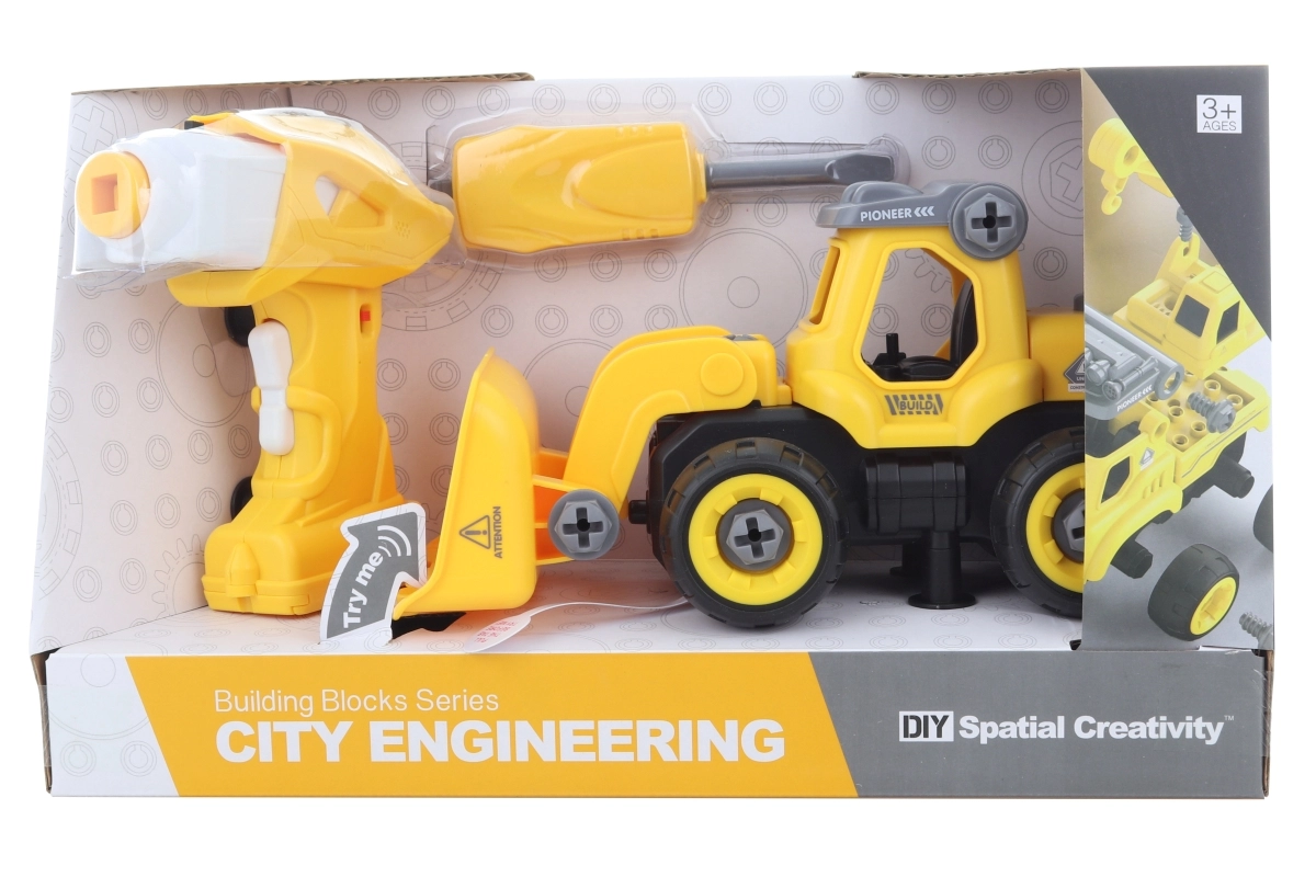 Zabawna śrubowa ładowarka na zdalne sterowanie ucieszy małych budowniczych od 3 lat. Dzieci samodzielnie złożą pojazd za pomocą dołączonego śrubokręta lub wiertarki, a następnie będą się cieszyć jazdą do przodu i do tyłu. W zestawie znajduje się wyjmowany silniczek z wiertarki, realistyczne dźwięki i proste sterowanie. Kreatywne składanie, sterowanie RC, efekty dźwiękowe i rozwój motoryki w jednym zestawie zabawkowym.