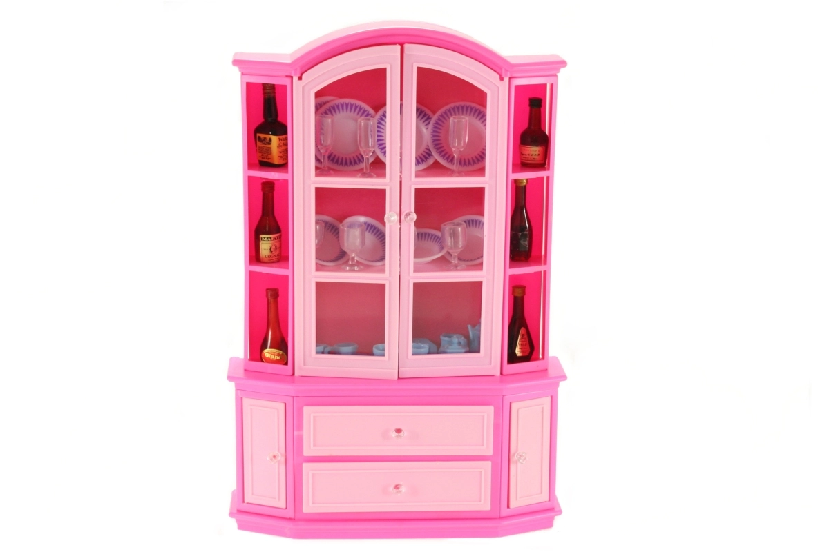 Stylowa szafka dla lalek marki Glorie oferuje praktyczne przechowywanie akcesoriów i atrakcyjny wygląd. Zawiera 2 szuflady, 2 szafki z otwieranymi drzwiczkami oraz przeszkloną część z bogatym wyposażeniem: 8 talerzy, 8 szklanek, 6 butelek i zestaw do herbaty. Idealny dodatek do domku dla lalek, który wspiera kreatywną zabawę dzieci od 3 lat.