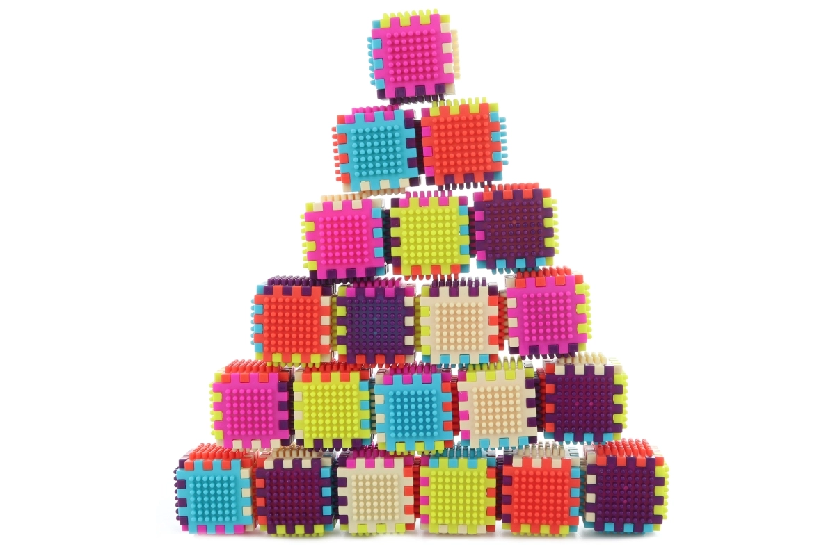 Żywe kolory i łatwo łączące się klocki inspirują dzieci do tworzenia wież, domków i fantazyjnych konstrukcji.