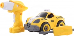 Buduj, wkręcaj i jedź! Ten kreatywny zestaw łączy wkręcany model żółtego taxi z możliwością przemiany w auto na zdalne sterowanie. Dzieci najpierw samodzielnie składają auto przy użyciu śrubokręta lub wiertarki, a następnie wyjmują silniczek z wiertarki, wkładają go do auta i cieszą się prostym sterowaniem do przodu i do tyłu.