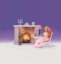 Stylowy zestaw do domku dla lalek wprowadza przytulną atmosferę salonu. Zawiera kominek z dekoracjami, fotel bujany, stolik z lampą oraz stojak z akcesoriami do kominka. Idealny do kreatywnej zabawy i uzupełnienia wnętrza domku dla lalek. Lalka nie jest częścią zestawu. Odpowiednie dla dzieci od 3 lat.