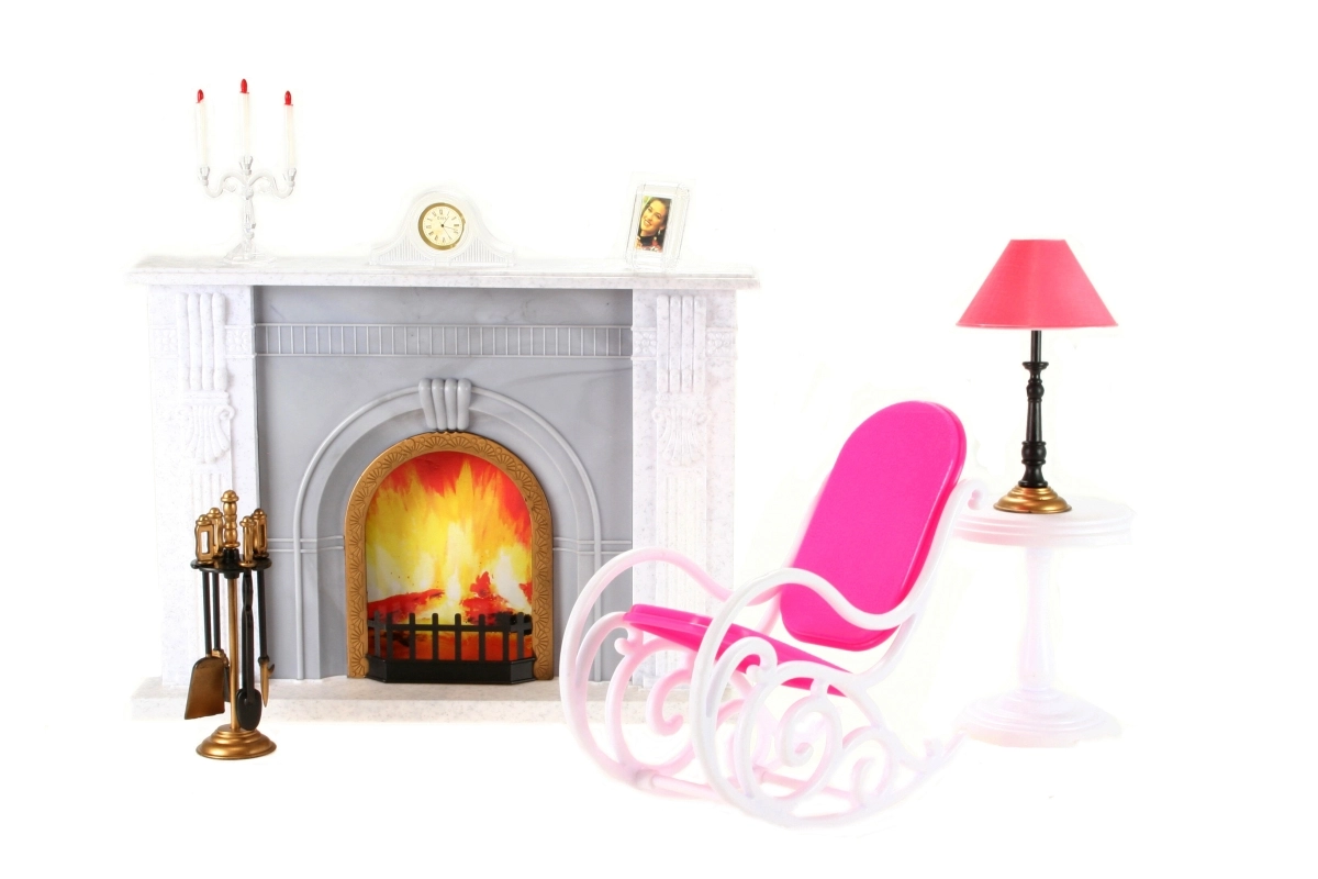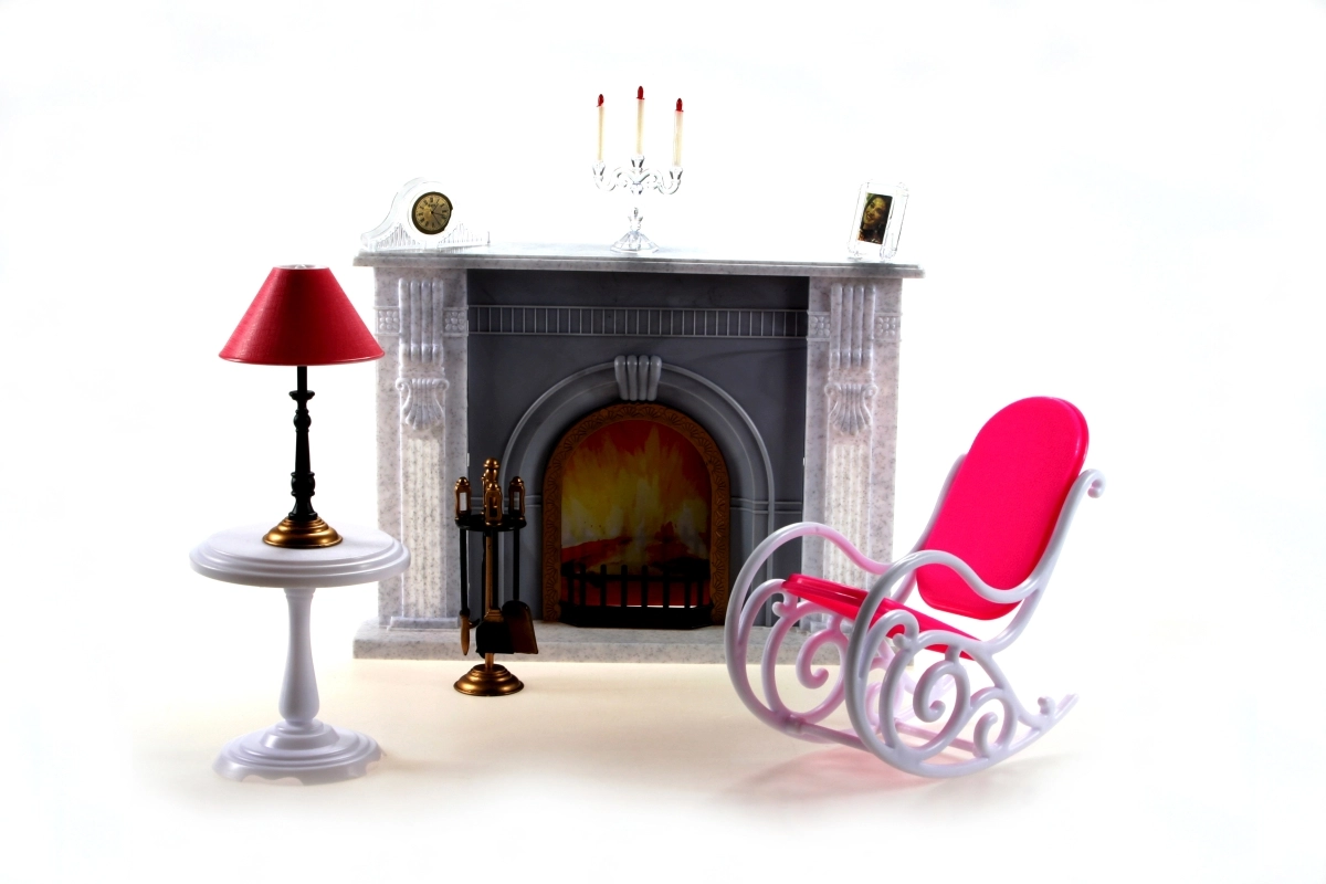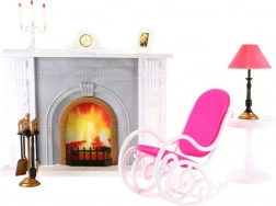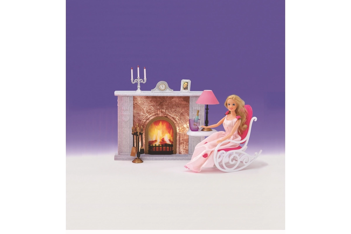 W komplecie znajduje się fotel bujany dla wygodnego siedzenia lalek, stolik z funkcjonalną lampą (dekoracyjną) oraz stojak z narzędziami kominkowymi. Nie brakuje dekoracji w postaci świecznika, obrazka i zegara dla pełnej atmosfery. Dzięki plastikowemu wykonaniu zestaw jest lekki, łatwy w utrzymaniu i bezpieczny dla dzieci.