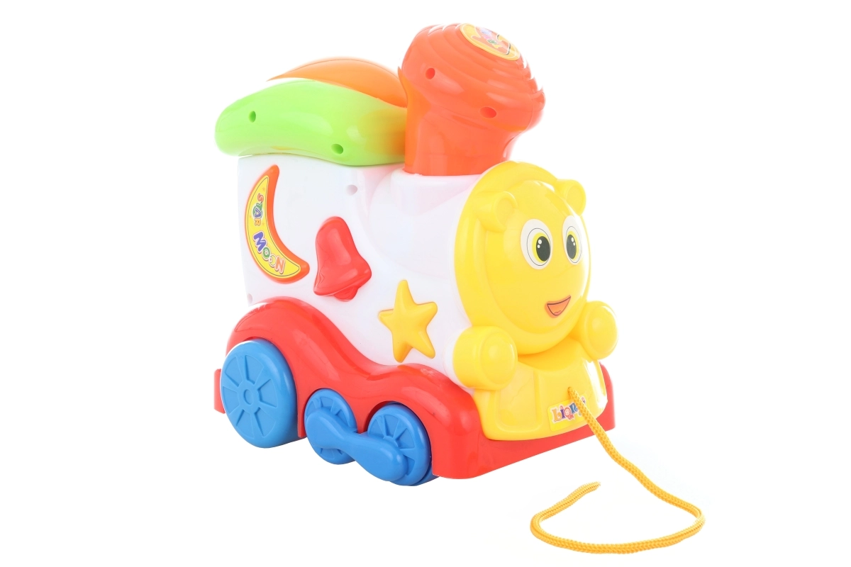 Zabawna plastikowa kolejka do ciągnięcia dla najmłodszych, która podczas ruchu i po naciśnięciu komina wydaje wesołe piszczenie. Idealna do rozwoju motoryki i stymulacji sensorycznej. Wielkość ok. 20 × 17 cm, lekka i łatwa do chwytania dla dzieci od 18 miesięcy.