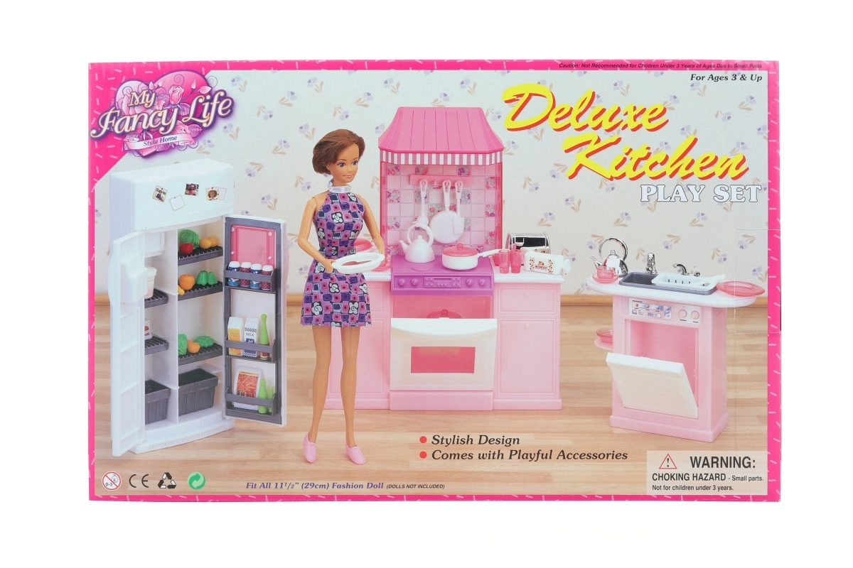Zestaw wykonany jest z trwałego plastiku i zawiera różnorodne akcesoria kuchenne, dzięki którym można od razu zacząć „gotować”. Idealny rozmiar dla większości standardowych lalek. Lalka nie jest dołączona.
