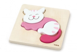 Drewniane Mini Puzzle od renomowanej marki Viga dla dzieci są idealnym rozwiązaniem zarówno dla środowiska domowego, jak i przedszkoli. Składają się z 4 elementów, które razem tworzą obrazek kota.