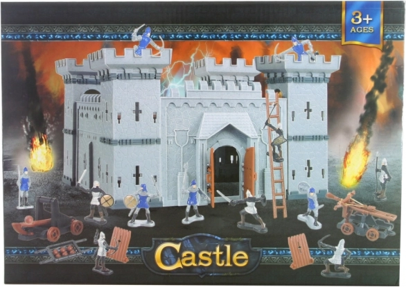 Zestaw do oblężenia zamku. Zawiera zamek o wymiarach ok. 28 x 28 x 29 cm, rycerzy oraz broń do oblężenia zamku. Rycerze ok. 6 x 4 cm. Materiał: plastik. Wymiary opakowania ok. 36 x 25 x 7 cm. Wiek 3+