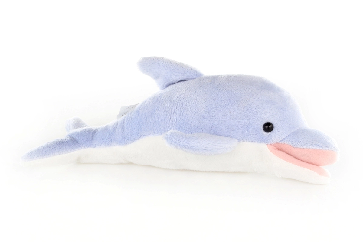 Uroczy pluszowy delfin w jasnoniebieskim kolorze ucieszy małych i dużych miłośników morza. Jest mięciutki, przyjemny w dotyku i idealny do tulenia. Kompaktowy rozmiar 25 cm sprawdzi się w łóżeczku i w podróży, a wysoka jakość wykonania oraz delikatny plusz zapewnią bezpieczną i długą zabawę.