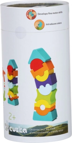 Wieża balansująca CUBIKA daje dzieciom radość odkrywania i nauki. Jedenaście precyzyjnie wykonanych drewnianych elementów w żywych kolorach wzajemnie się równoważy, dzięki czemu można tworzyć zarówno stabilne, jak i śmiało przechylone konstrukcje. Zabawa rozwija koordynację ręka–oko, cierpliwość i wspiera kreatywność.