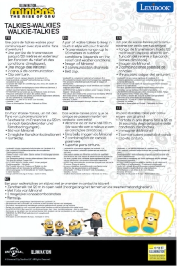 Dziecięce krótkofalówki MINIONKI zapewniają łatwą komunikację na krótką odległość i mnóstwo frajdy podczas zabaw, spacerów oraz przygód na łonie natury. Ergonomiczny kształt pasuje do małych dłoni, obsługa jest intuicyjna, a czysty cyfrowy dźwięk sprawia, że wiadomości nie zaginą.