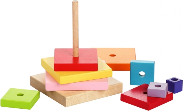 Kolorowa piramida pomaga rozwijać zdolności sensomotoryczne, logiczne myślenie i kreatywność dzieci.