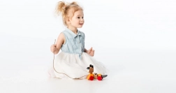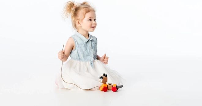Dzięki ruchomości i możliwości ciągnięcia zabawka wspiera rozwój małej motoryki.