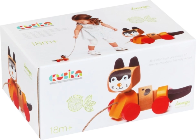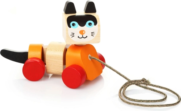 Drewniana zabawka do ciągnięcia, zaprojektowana w kształcie wesołego kociaka, jest idealna do zabawy i rozwoju umiejętności motorycznych dzieci. Zabawka ma ruchomy tułów i kółka, co umożliwia płynne i wesołe ruchy podczas ciągnięcia za sznureczek. Kolorowy design przyciąga uwagę dzieci i zachęca je do aktywnej zabawy.