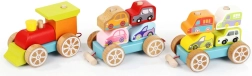 Ta kolorowa, drewniana układanka zawiera 14 elementów, z których dzieci mogą złożyć pociąg z dwoma wagonami i ośmioma autkami. Bawią się nie tylko poszczególnymi częściami, ale także rozwijają swoje zdolności sensoryczno-motoryczne, myślenie logiczne i kreatywność.