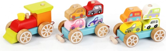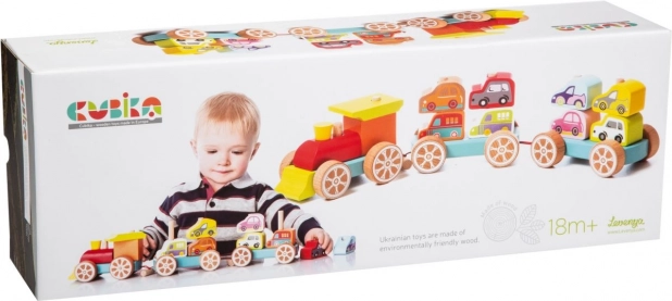 Pociąg z autami drewniana układanka od marki CUBIKA wykonany jest z ekologicznego drewna i oferuje 14 kolorowych elementów do złożenia. Świetna zabawka do rozwijania dziecięcych umiejętności motorycznych i kreatywności.