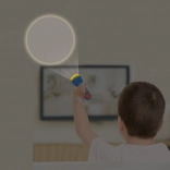 Kompaktowa latarka wygodnie leży w dziecięcej dłoni i pomaga przy sygnałach świetlnych oraz oświetlaniu drogi podczas wieczornych wypraw.