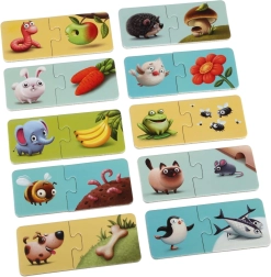 Odkryj zabawny zestaw edukacyjny, w którym dzieci dopasowują zwierzęta do ich ulubionych przysmaków. Opakowanie zawiera 20 solidnych kartonowych elementów tworzących 10 dużych par. Gra rozwija logiczne myślenie, motorykę małą, koncentrację oraz łączenie zależności w formie radosnej nauki przez zabawę. Idealne dla dzieci od 2 lat.
