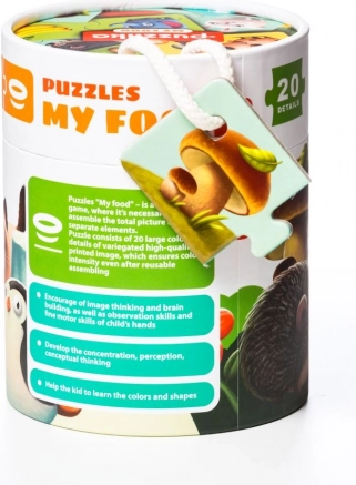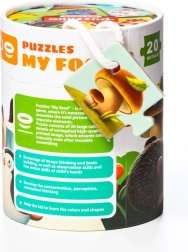 Duże, grube kartonowe elementy są łatwe do trzymania i układania. Puzzle są przechowywane w praktycznej, zamykanej tubie z uchwytem, więc świetnie sprawdzą się także w podróży lub jako prezent. Dzięki wyrazistym ilustracjom i intuicyjnym kształtom elementów układanie jest naturalne i motywujące nawet dla najmłodszych.
