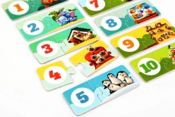 Zabawny, edukacyjny zestaw dla najmłodszych: 20 solidnych elementów tworzy 10 par, które dzieci łączą według liczby zwierzątek i cyfr 1–10. Gra wspiera logiczne myślenie, małą motorykę oraz rozpoznawanie liczb, wykonana jest z trwałego, wielowarstwowego kartonu i łatwo ją utrzymać w czystości przecierając wilgotną ściereczką.