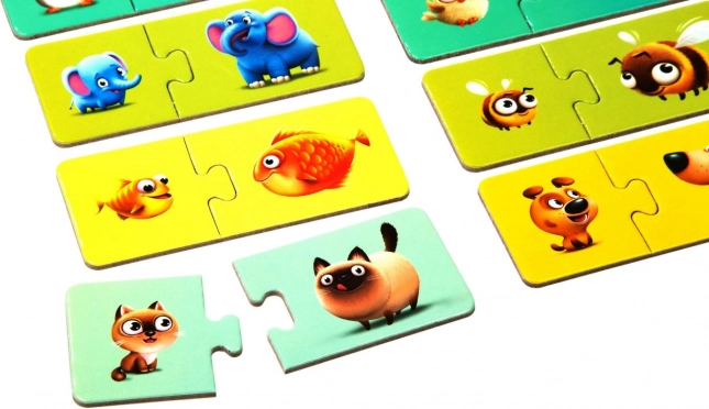 Puzzlika Moja rodzina to mądre i radosne puzzle dla najmłodszych, które oferują aktywną naukę poprzez zabawę. Dzieci łączą pary kart — młode zwierzęta i innych członków ich rodziny — rozwijając przy tym zdolności rozpoznawania, koncentracji i prawidłowego dopasowywania.