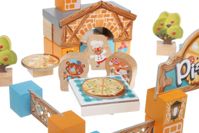 Drewniany zestaw Pizzeria od marki Cubika oferuje dzieciom możliwość zanurzenia się w świat fantazji i magicznej kulinarnej atmosfery pizzerii. Zestaw zawiera 30 drewnianych elementów i 12 kartonowych dodatków tematycznych. Wszystko wykonane jest z wysokiej jakości i bezpiecznych materiałów, które spełniają surowe normy europejskie.