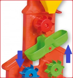 Obserwuj, jak kolorowe koła się obracają, a rowek rozdziela strumień. Zabawa wspiera percepcję sensoryczną i myślenie logiczne.