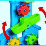 Intuicyjna ruchoma zasuwka pod lejkiem pozwala dzieciom regulować wielkość otworu, a tym samym intensywność strumienia. Zabawka została wyprodukowana we Włoszech z wysokiej jakości tworzyw sztucznych z naciskiem na bezpieczeństwo najmłodszych.