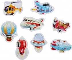 Puzzle Transport lotniczy od Puzzlika to idealne wprowadzenie do świata lotnictwa dla najmłodszych miłośników układanek. Zabawny i edukacyjny zestaw zawiera 8 par puzzli przedstawiających różne środki transportu, takie jak samoloty, balony i rakiety. Zadaniem dzieci jest odnaleźć i połączyć właściwe elementy, aby stworzyć pełny obrazek, co pomaga rozwijać małą motorykę i umiejętność koncentracji.