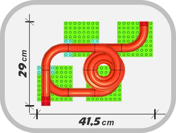 - Długość trasy 160 cm, wymiary złożonego toru: 41,5 × 28,7 × 24,4 cm