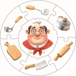 - 3 oddzielne okrągłe puzzle (strażak, kucharz, fryzjerka)