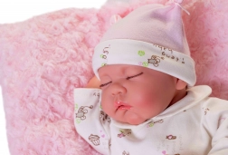 Lalka Luna wygląda jak prawdziwe śpiące niemowlę z detalicznymi cechami twarzy i realistycznym miękkim winylowym ciałem, które jest przyjemne w dotyku.