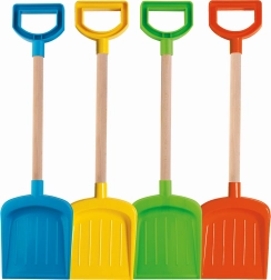 Praktyczna dziecięca łopata z drewnianym trzonkiem i wygodnym plastikowym uchwytem dla łatwego trzymania. Wyprodukowana we Włoszech z wysokiej jakości i wytrzymałych tworzyw, odpowiednia dla dzieci od 12 miesięcy. Idealna do piasku i ogrodu, zaprojektowana do codziennego użytkowania.