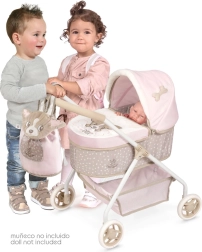 Podaruj dzieciom magiczną zabawę z eleganckim wózkiem dla lalek w delikatnych różowo-beżowych tonach. Połączenie gładkich tkanin i aksamitnego haftu pieska nadaje wózkowi premium wygląd i przyjemną fakturę w dotyku. Dzięki lekkiej konstrukcji i gładkim kółkom łatwo się nim jeździ w domu i na zewnątrz.