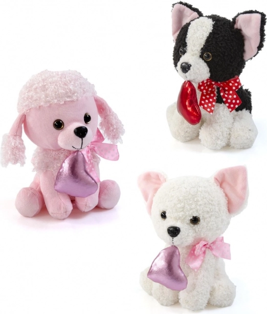 Uroczy pluszowy piesek z błyszczącym serduszkiem ucieszy każde dziecko i dorosłego. Jest mięciutki w dotyku, ma stylową kokardkę i sprawdzi się jako idealny prezent z miłości, na urodziny lub po prostu na poprawę nastroju. Kompaktowy rozmiar 17 cm nadaje się do przytulania i dekoracji pokoju dziecięcego.