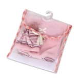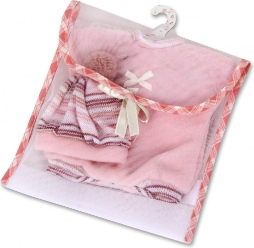 Zestaw jest ręcznie wykonany w Hiszpanii z naciskiem na jakość i detale. W komplecie znajduje się praktyczna przenośna torba na rzep, w której ubranka łatwo przechowasz lub zabierzesz w podróż; opakowanie uzupełnia plastikowy wieszak dla przejrzystego przechowywania.