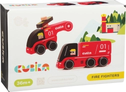 Podaruj dzieciom kreatywną zabawę z drewnianym zestawem CUBIKA strażacy. Zestaw tworzą wóz strażacki i helikopter wykonane z najwyższej jakości drewna klonowego i bukowego, lakierowane bezzapachowymi farbami na bazie wody. Dzięki zaokrąglonym krawędziom i starannemu wykończeniu świetnie leżą nawet w małych rączkach i wspierają sensomotorykę, logiczne myślenie oraz kreatywność.