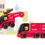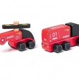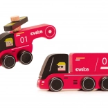 Drewniany zestaw CUBIKA strażacy zawiera jedno autko strażackie i jeden helikopter z wysokiej jakości klonu i buku. Dzięki zaokrąglonym krawędziom oraz bezpiecznym farbom wodnym jest idealny dla dzieci od 3 lat. Certyfikaty TÜV i europejska norma EN 71 gwarantują wysoki poziom bezpieczeństwa. Wyprodukowano w Europie. Długość auta 12 cm, helikoptera 10 cm.