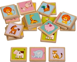 Drewniane memory Zwierzątka marki LUCY & LEO zawiera 12 par kolorowych obrazków ulubionych zwierząt. Każdy kartonik ma wygodny rozmiar, dobrze leży w dziecięcej dłoni, a dzięki jakościowemu drewnu wytrzymuje częstą zabawę. Idealne do pierwszych gier pamięciowych, wspólnych chwil z rodzicami i samodzielnego odkrywania.