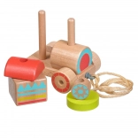 Po ułożeniu ciuchcia może wyruszyć w drogę. Sznurek o długości 45 cm jest idealny dla małych odkrywców.