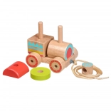 Drewniana ciuchcia do ciągnięcia łączy klasyczny wygląd z nowoczesnymi elementami edukacyjnymi. Dzieci układają kolorowe części na właściwych miejscach, trenują chwyt i poznają podstawowe kształty oraz kolory. Po ułożeniu mogą łatwo ciągnąć ciuchcię za sznurek, rozwijając koordynację chodu.