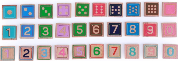 - Drewno (karty, klocki), plastik/kompozyt (patyczki do liczenia)