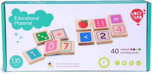 Odkryj zabawną drogę do matematyki z drewnianym zestawem Lucy & Leo dla dzieci od 3 lat. Zawiera 135 elementów do pierwszego liczenia: cyfry, znaki matematyczne, kolorowe patyczki do liczenia oraz karty z obrazkami. Wspiera myślenie logiczne, rozpoznawanie liczb i pojęcia więcej/mniej poprzez zabawę.