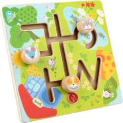 Odkryj edukacyjną, pełną zabawy zabawkę dla najmłodszych: drewniany labirynt motoryczny Słoneczna Dolina marki Lucy & Leo. Kolorowa plansza z motywem natury i zwierzątek rozwija małą motorykę, logiczne myślenie oraz koordynację ręka–oko. Dzieci przesuwają zwierzątka po gładkich rowkach i wykonują proste zadania, które wzmacniają cierpliwość i koncentrację.