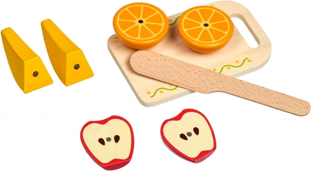 Poszczególne elementy są połączone magnesami, dzięki czemu dzieci mogą je bezpiecznie „kroić” i ponownie łączyć. Świetne do treningu motoryki i realistycznej zabawy.
