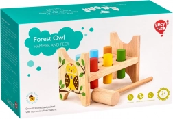 Ten wysokiej jakości drewniany przebijak z motywem leśnej sowy to idealna zabawka dla dzieci, które kochają aktywną i wartościową rozrywkę. Sześć kolorowych kołków i drewniany młoteczek pomagają dzieciom trenować precyzję uderzenia, siłę i rytm.