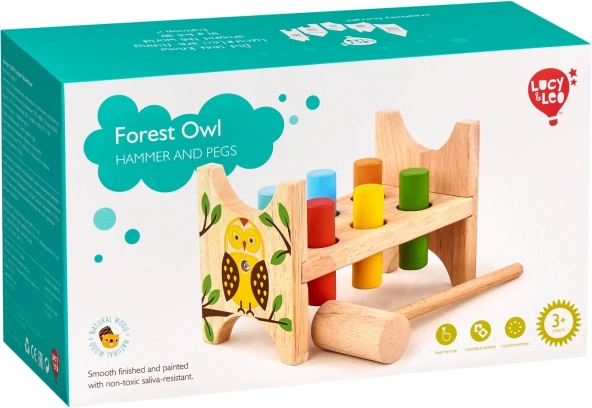 Zabawny i wytrzymały drewniany przebijak z motywem sówki od marki Lucy & Leo rozwija małą motorykę, koordynację ręka–oko, a w zestawie znajduje się młoteczek i kolorowe kołki. Po wbiciu wszystkich kołków wystarczy odwrócić stojak i zabawa może toczyć się od nowa.