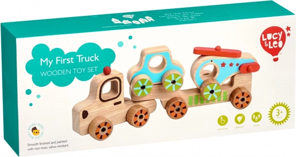 Ta drewniana układanka dla najmłodszych łączy zabawę z nauką. Dzieci mogą samodzielnie jeździć ciężarówką, autkiem i helikopterem, a następnie załadować wszystko na pakę i wyruszyć „w drogę”. Kolorowe akcenty i proste kształty wspierają rozwój percepcji wzrokowej, a manipulacja elementami ćwiczy chwyt i zręczność.